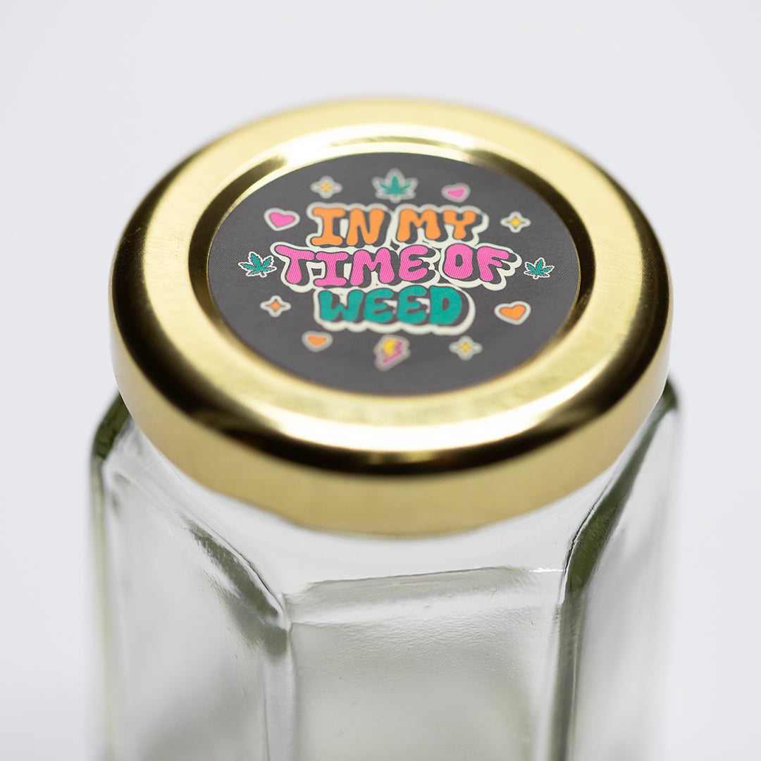 Glass Stash Jar Hexagon In My Time Of Weed - 50ml